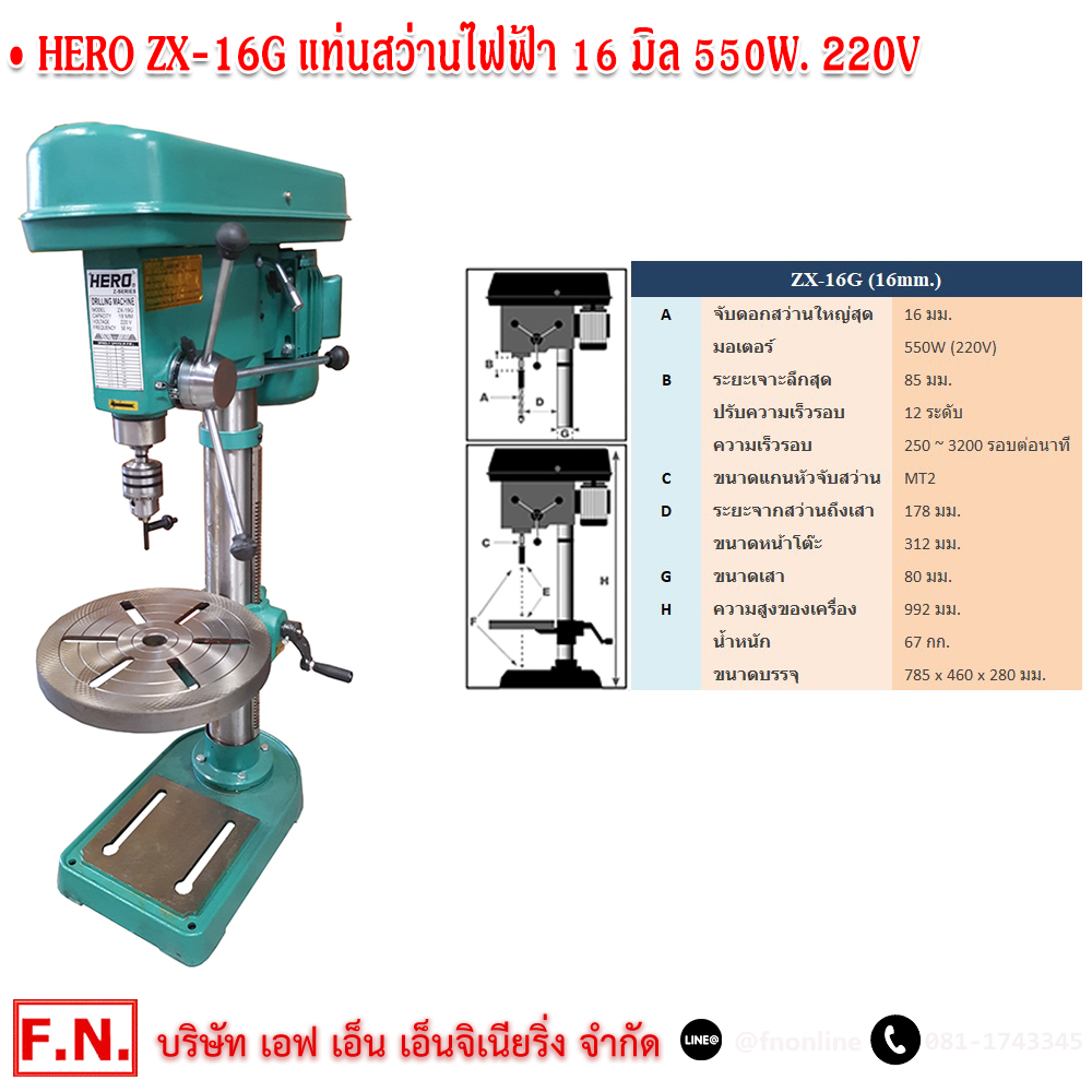 • แท่นสว่านไฟฟ้า ยี่ห้อ HERO รุ่น ZX-16G ขนาด 16 มม. สินค้าคุณภาพจากประเทศไต้หวัน