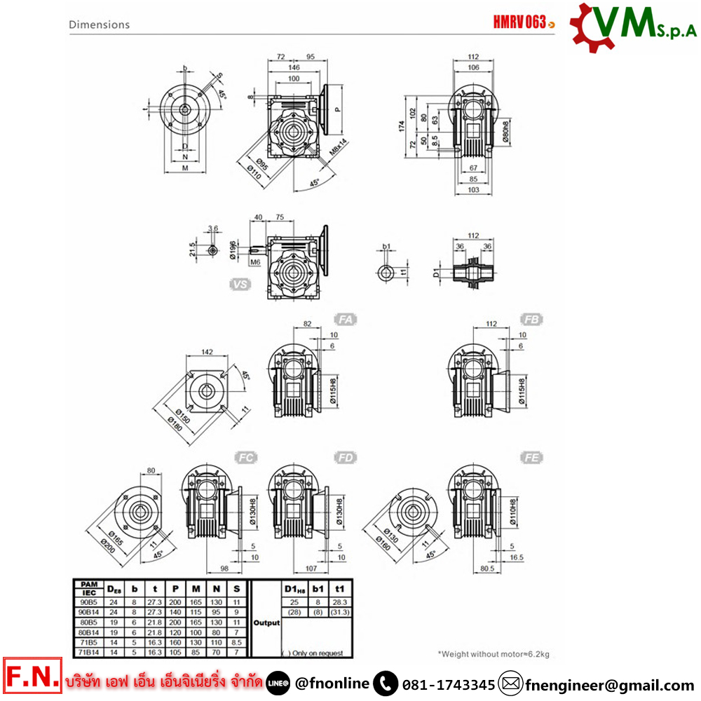 HMRV-063 เกียร์ทดรอบ ใช้มอเตอร์ 0.25KW. – 1.5KW. อัตราทด 7.5-100