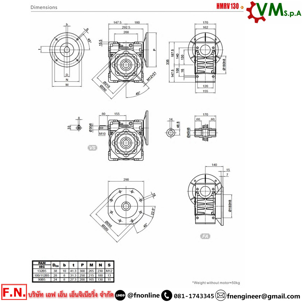 HMRV-130 เกียร์ทดรอบ ใช้กับมอเตอร์ 2.2KW.-7.5KW. อัตราทด 7.5-100