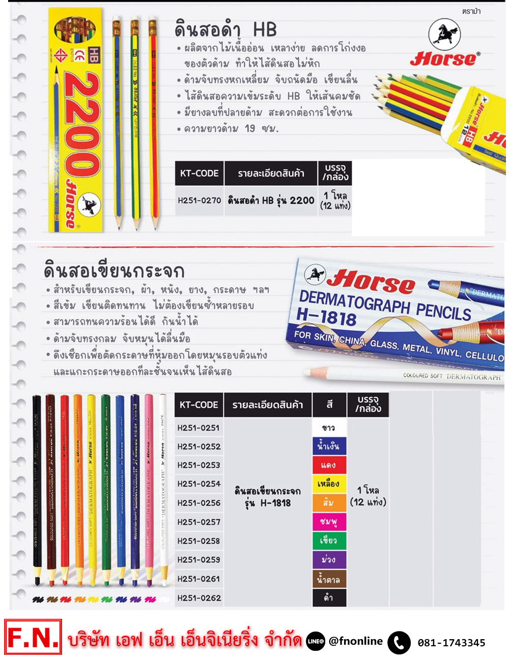 • ดินสอเขียนกระจก HORSE (ตราม้า) รุ่น H-1818 สีขาว