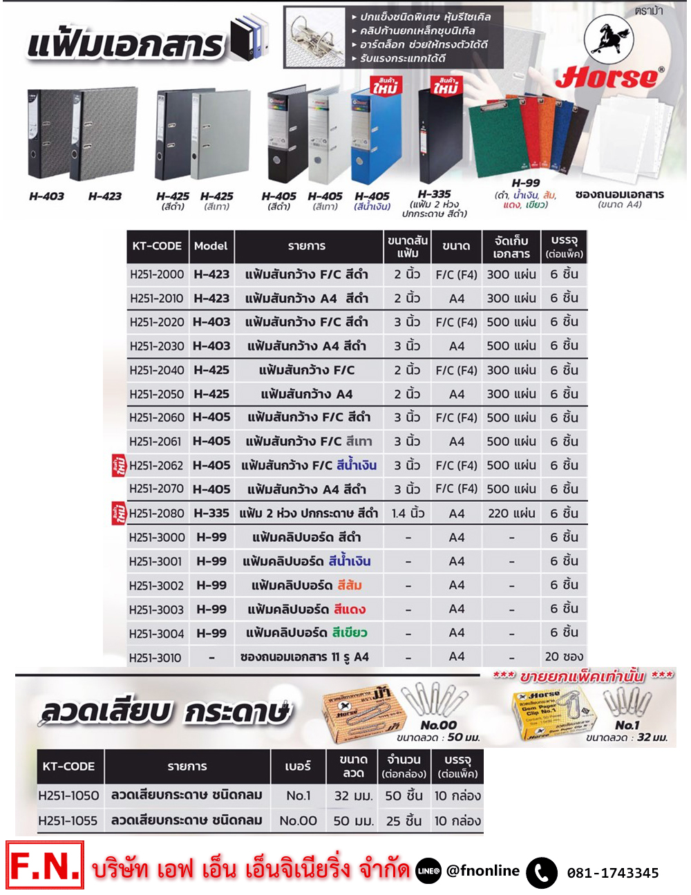 • แฟ้มสันกว้าง 3 นิ้ว แบบก้านยก ตราม้า รุ่น H-403 (สีดำ)
