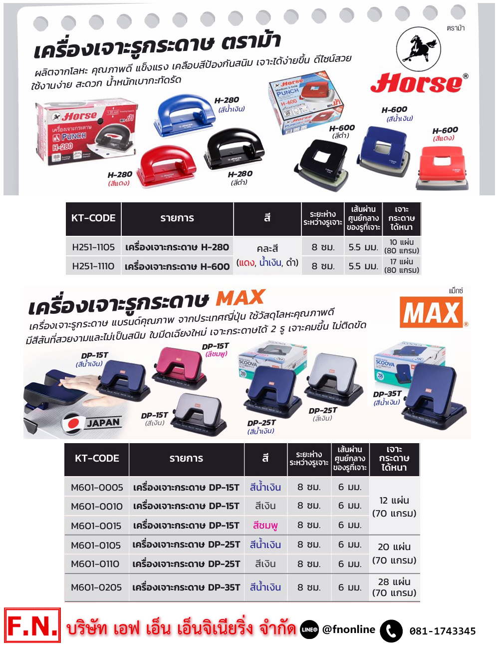 • เครื่องเจาะกระดาษ ตราม้า รุ่น H-600 (คละสี)
