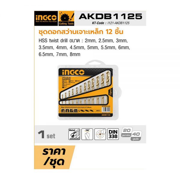 • ชุดดอกสว่านเจาะเหล็ก 12 ชิ้น INGCO รุ่น AKDB1125