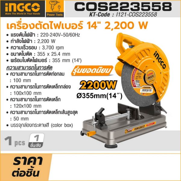 • เครื่องตัดไฟเบอร์ 14 นิ้ว 2,200 วัตต์ INGCO รุ่น COS223558