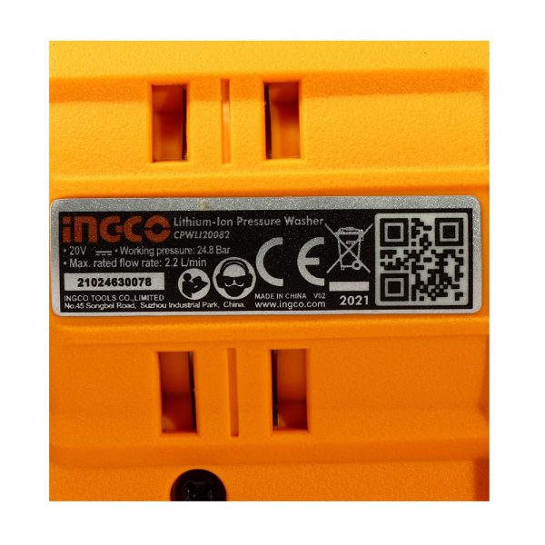 • ปืนฉีดน้ำแรงดันสูงไร้สาย 20 โวลต์ INGCO รุ่น CPWLI20082 ระบบหยุดอัตโนมัติ