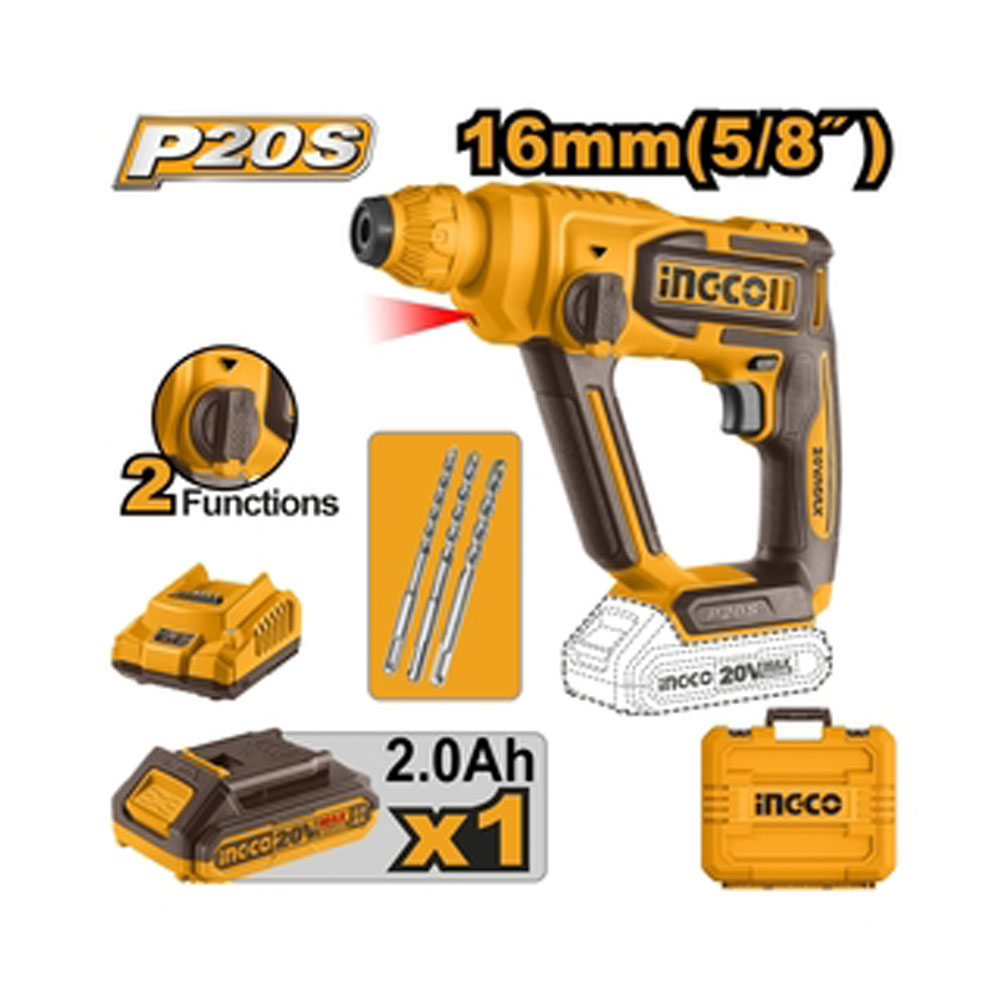 • สว่านโรตารี่ไร้สาย 20V 16 มม. INGCO รุ่น CRHLI201681