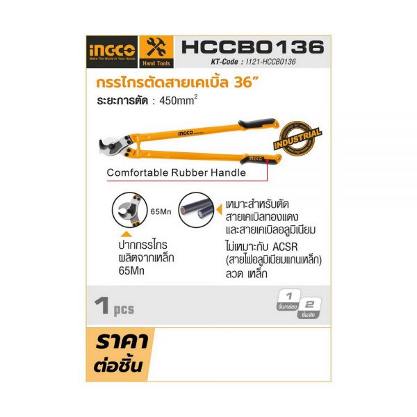 HCCB0136 กรรไกรตัดสายเคเบิ้ล อิงโก (INGCO) รุ่น HCCB0136 ขนาด 36 นิ้ว ระยะการตัด 450 ตารางมิลลิเมตร