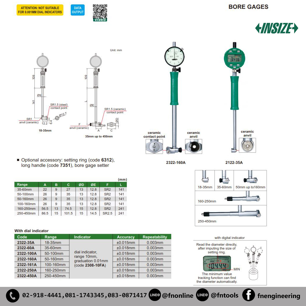 INSIZE 2322-35A เกจวัดกระบอกสูบ บอร์เกจวัดรูใน ช่วงระยะวัด 18-35MM
