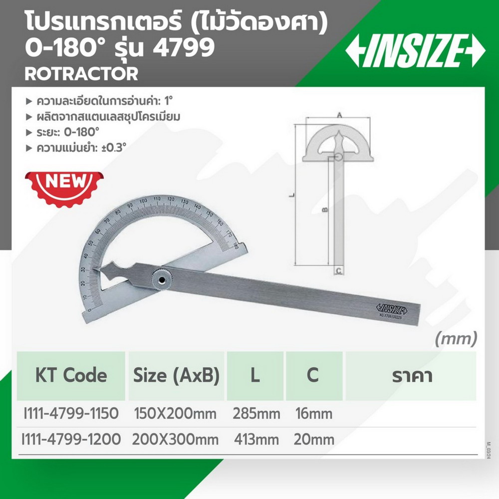 • โปรแทรกเตอร์ (ไม้วัดองศา) INSIZE รุ่น 4799-1200 วัดมุม 0-180°