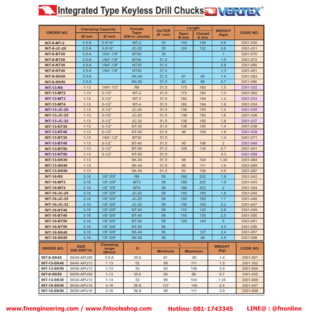 INT-13-JC25 หัวจับดอกสว่าน ด้าม JC25 สามารถจับ 1-13 MM / 0-1/2″
