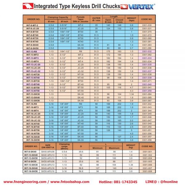 • Clamping Capacity ขนาด Ød : 1-13 mm / 0-1/2″ inch
