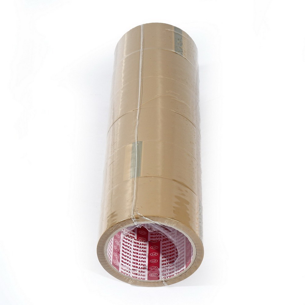 INTER TAPE เทป OPP สีน้ำตาล ขนาด 2 นิ้ว X 45 หลา (แกนแดง) เนื้อกาวเหนียว ติดแน่น ความเหนียว 43 ไมคร่อน สำหรับปิดกล่องกระดาษ กล่องพัสดุ และอื่นๆ