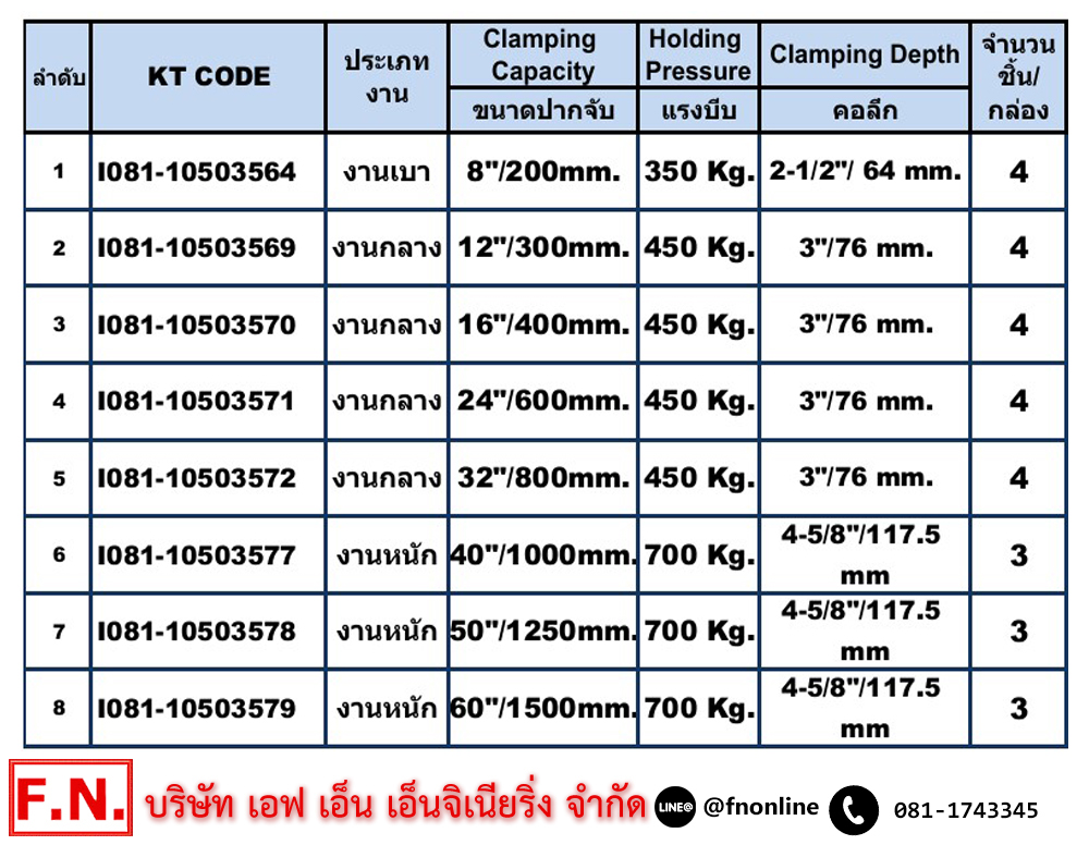 • ปากจับ Clamping Capacity : 8″ (200 mm)