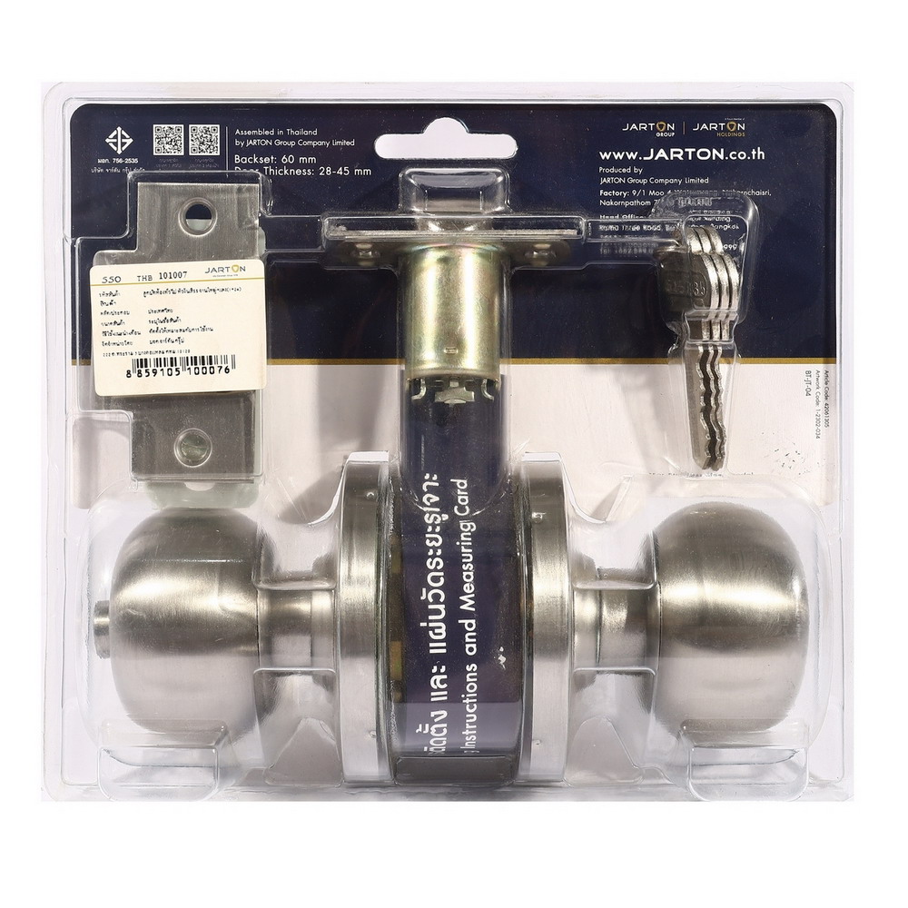 JARTON ลูกบิดประตูหัวจัน ระบบลูกปืนทองเหลือง 6 ร่อง ห้องทั่วไป รุ่น 101007 สีสเตนเลส จานใหญ่ ขนาด 75 มม. ผลิตจากวัสดุสเตนเลส 304 ทองเหลือง และ เหล็กชุบ