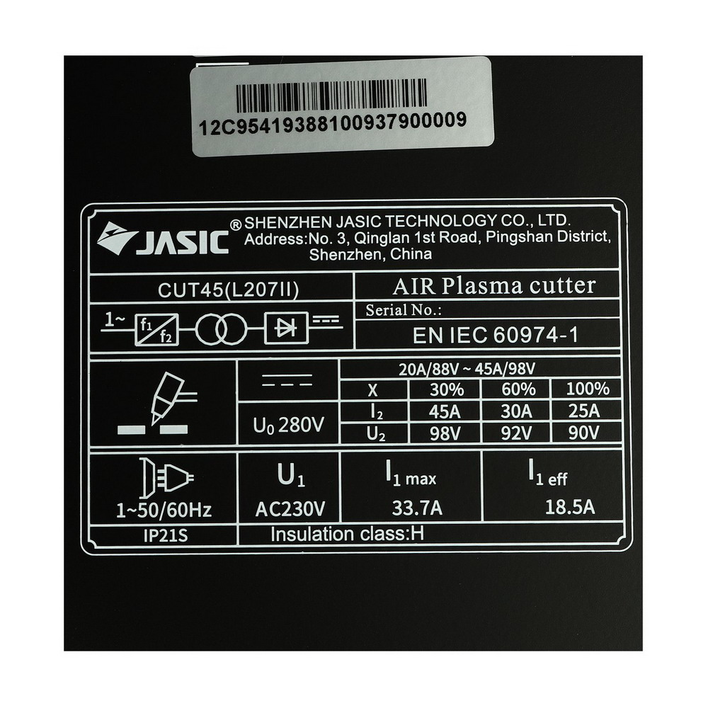 JASIC เครื่องตัดพลาสม่า รุ่น CUT45L207II 220V. ความหนาตัดสูงสุด 15 มม. ระบบป้องกัน IP21S