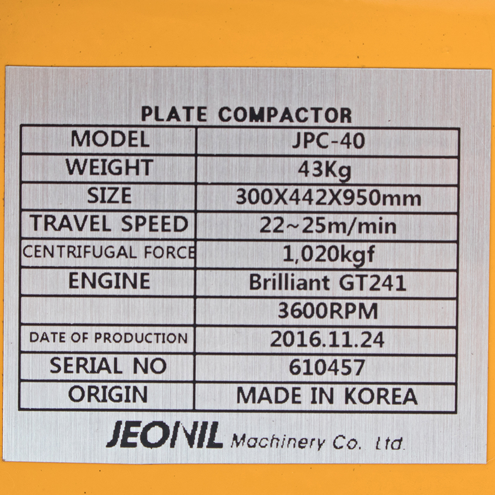 JEONIL JPC-40 เครื่องตบดิน (ไม่รวมเครื่องยนต์)