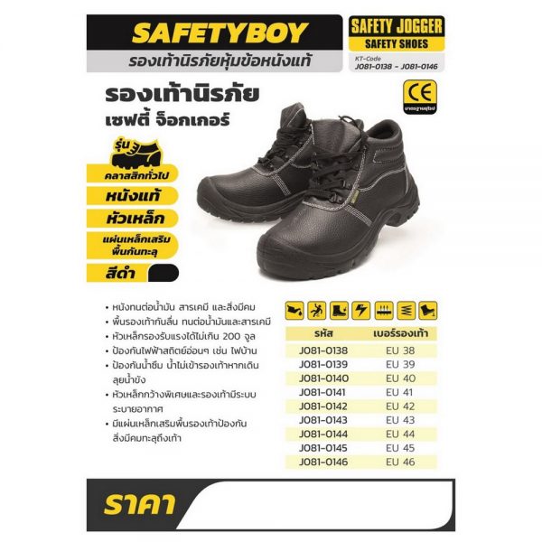 JOGGER รองเท้าเซฟตี้ เบอร์ EU38-46 รุ่น SAFETYBOY หนังแท้ หุ้มข้อ หัวเหล็ก