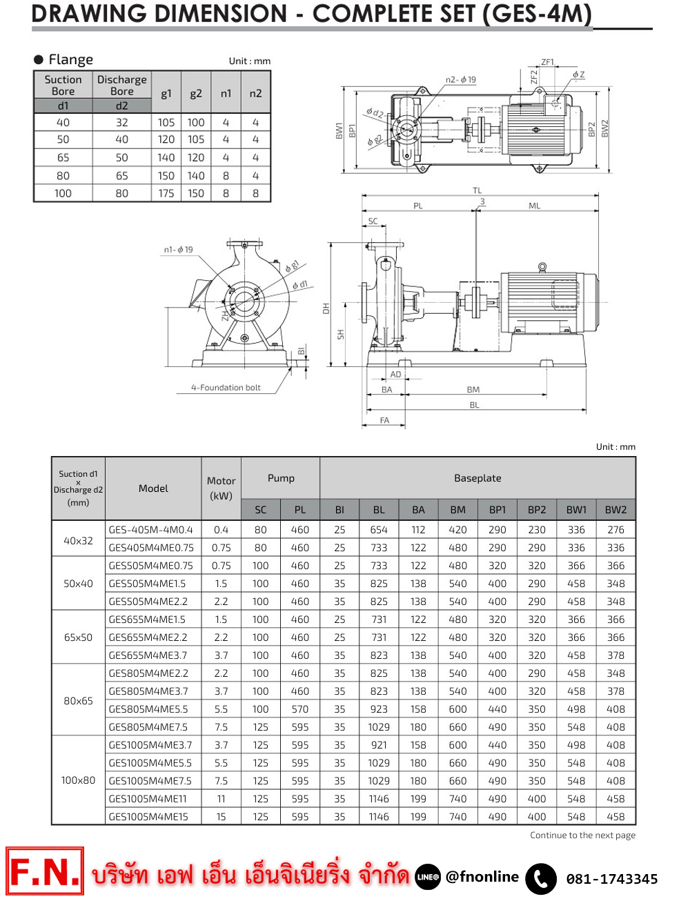 • ท่อดูดส่ง Discharge Bore Size : 80 X 65 mm.