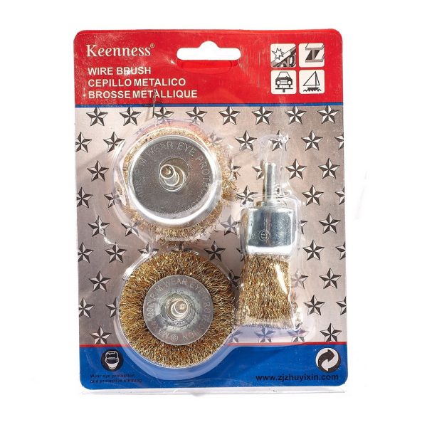 KEENNESS O122 แปรงลวดทองเหลือง 2 นิ้ว แกน 6 มิล 3 ชิ้น/ชุด