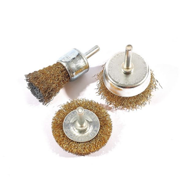 ในชุดประกอบด้วย แปรงลวดกลมมีแกน 1 ชิ้น แปรงลวดถ้วย 1 ชิ้น แปรงลวดพู่กัน 1 ชิ้น