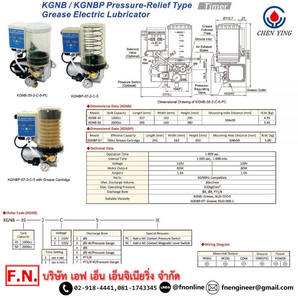 KGNB-35 ปั้มจ่ายจารบีอัตโนมัติ แบบใช้ลมอัดแรงดัน 80W,220V ระบบตั้งเวลา ถัง 1000 CC