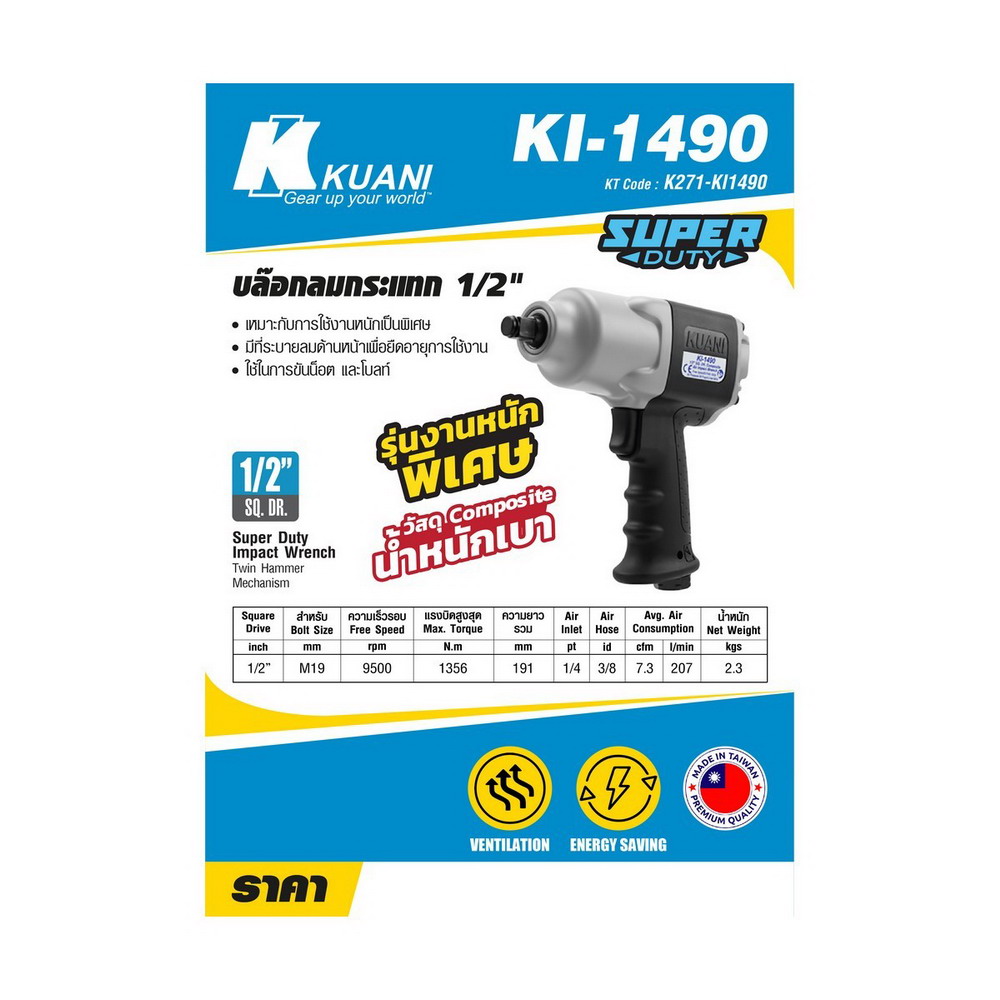 KUANI KI-1490บล๊อกลม1/2″TWIN HAMMER(COMPOSITE) แรงบิดสูงสุด 1,356 N.M