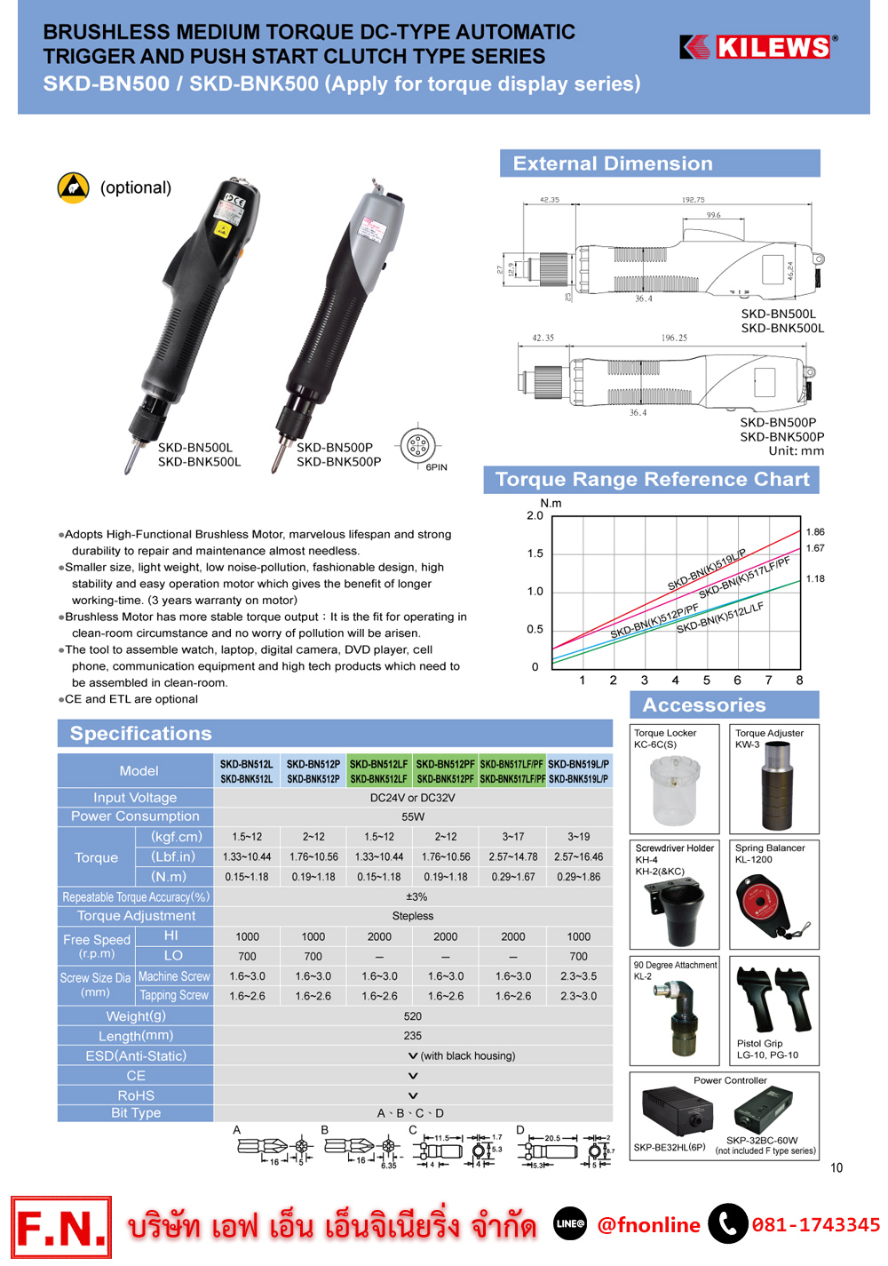 KILEWS SKD-BN512LF ไขควงทอร์คไฟฟ้า แบบไม่ใช้แปรงถ่าน DC32V แรงบิด 2-12 kgf.cm ความเร็วรอบ 2000 RPM
