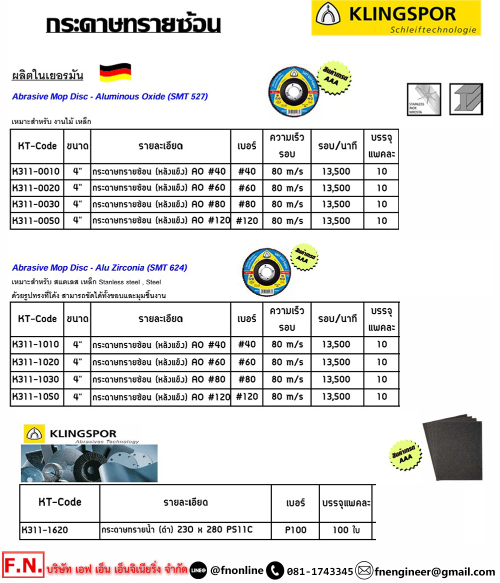 • วัสดุที่ขัดได้ : สแตนเลส, เหล็ก