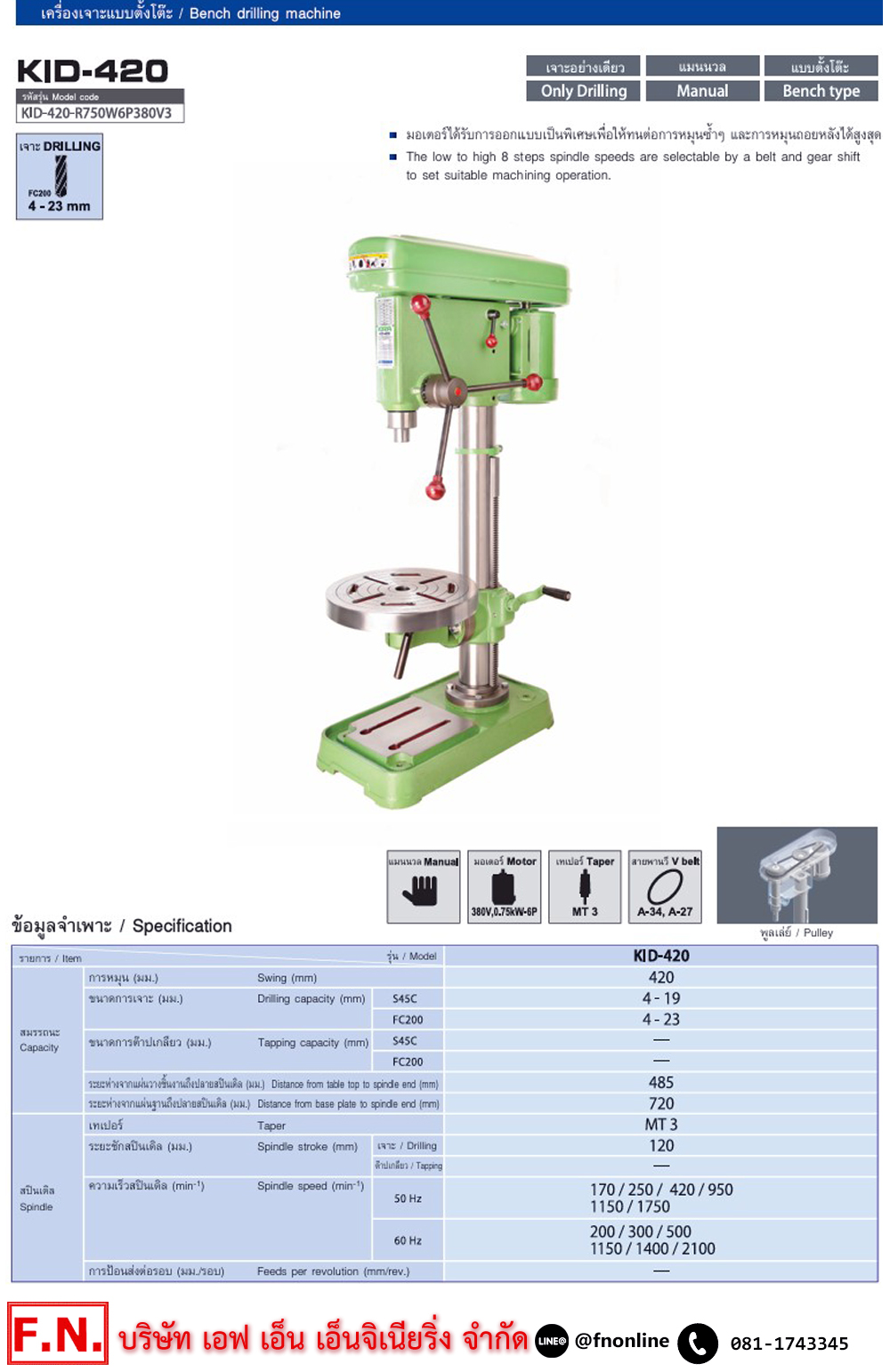 KIRA KID-420 สว่านแท่น 750W. 6P 380V สามารถเจาะ 4-23 มิล ให้แรงเจาะที่ทรงพลัง