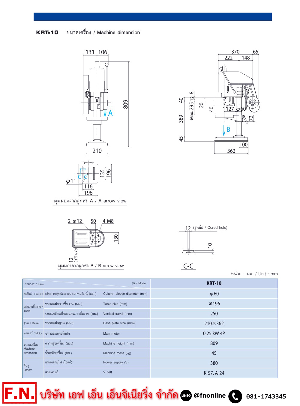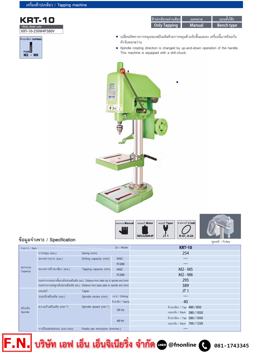 • KIRA KRT-10 แท่นต๊าปเกลียว มอเตอร์ 250W 4P 380V สามารถต๊าป M2-M6