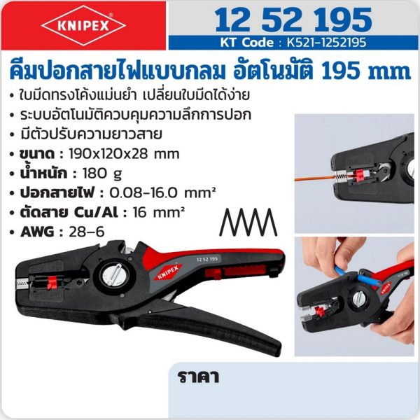 • KNIPEX คีมปอกสายไฟแบบกลม อัตโนมัติ ขนาด 195 มม รหัส 12 52 195