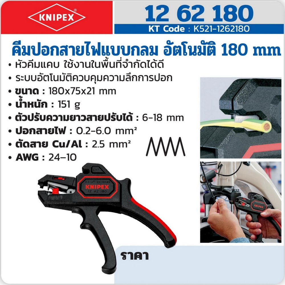 • KNIPEX คีมปอกสายไฟแบบกลม อัตโนมัติ ขนาด 180 มม รหัส 12 62 180