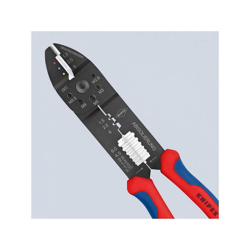 • สำหรับตัดสายไฟ, ปอกสายไฟ และย้ำหางปลาหุ้มฉนวน, ข้อต่อหุ้มหดและขั้วต่อประเภทเสียบแบบไม่หุ้มฉนวน