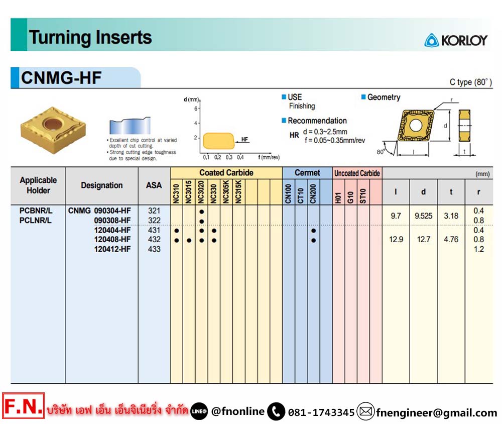 • เกรดคาร์ไบด์ เคลือบผิวที่มีความแข็งแรงของขอบสูง ออกแบบมาสำหรับการกลึงและกัดเหล็กทั่วไป