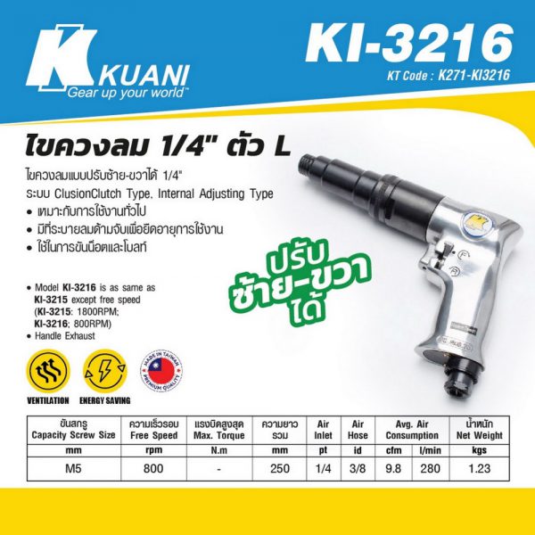 KUANI KI-3216 ไขควงลม ปรับซ้าย-ขวาได้ 1/4″ ตัว L