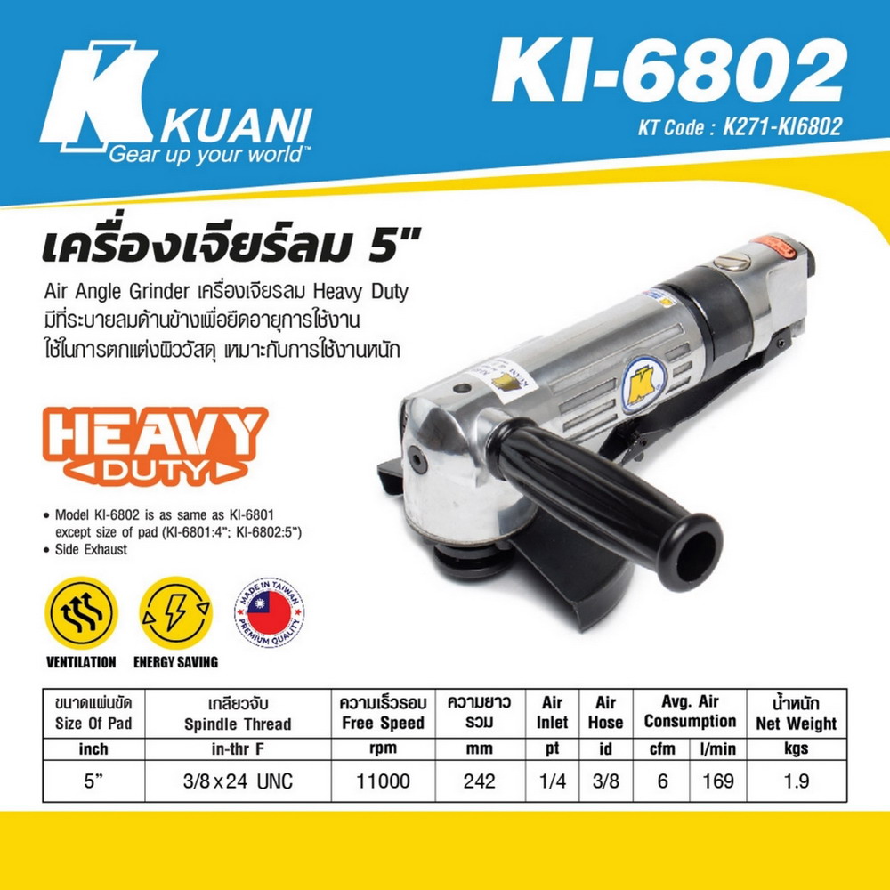 KUANI KI-6802 เครื่องเจียลม 5 นิ้ว ความเร็วรอบ 11000 RPM