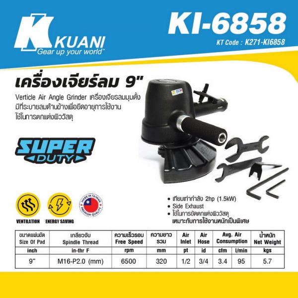 KUANI KI-6858 เครื่องเจียร์ลม 9″ ความเร็วรอบ 6,500 RPM