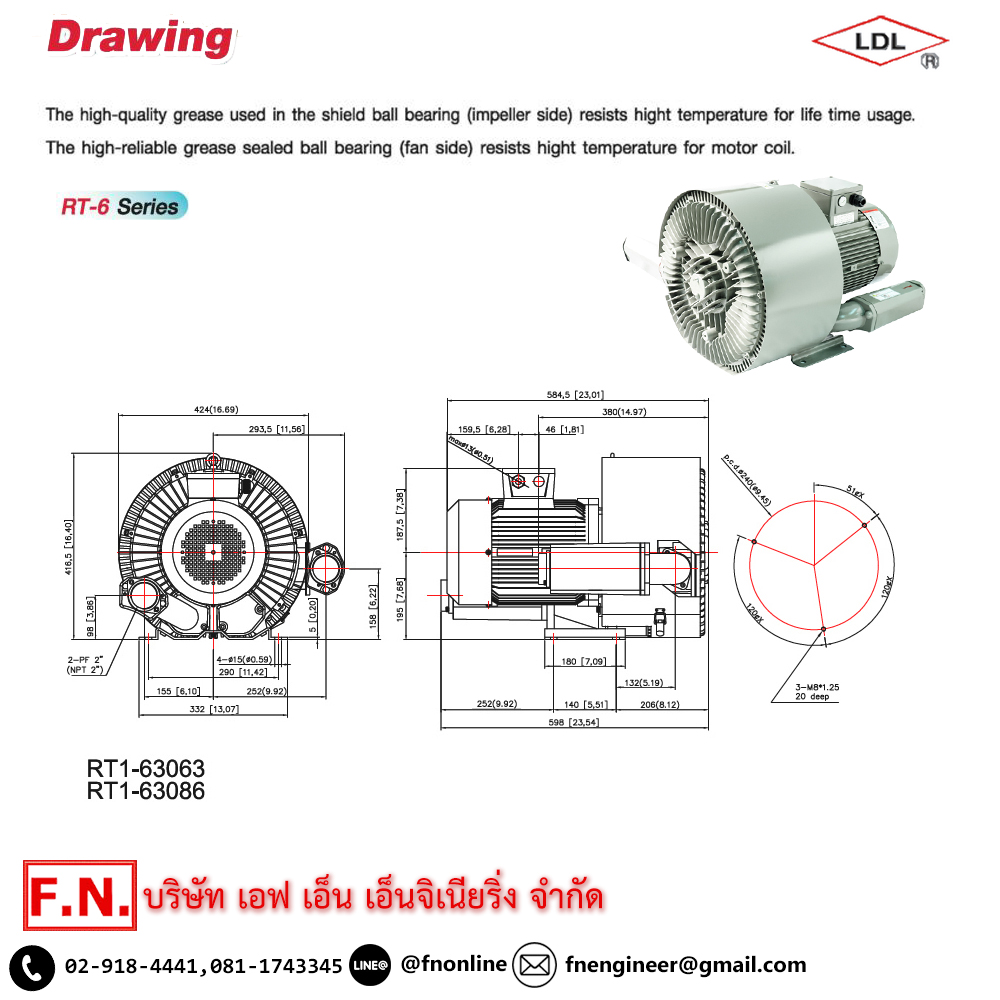 LDL RT-63086 ริงโบล์เวอร์ 2 ใบพัดแรงลมสูง 10HP 380V ท่อ 2 นิ้ว