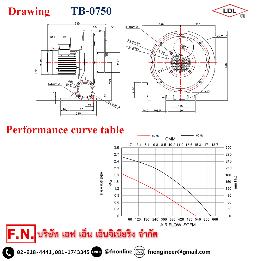 LDL TB-0750 เทอร์โบโบลเวอร์ 1HP, 220V ท่อออก 4 นิ้ว แรงลมสูงสุด 6/8 M³/Min