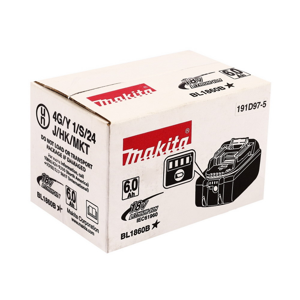 MAKITA แบตเตอรี่ ลิเธียมไอออน 18 โวลต์ 6.0 แอมป์ รุ่น BL1860B ใช้กับเครื่องชาร์จ รุ่น DC18RC / DC18SD / DC18RD / DC18SE / DC18RE