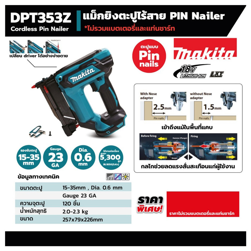 MAKITA DPT353Z เครื่องยิงตะปู PIN 18V (ตัวเปล่าไม่รวมแบต) ขนาด 35 MM