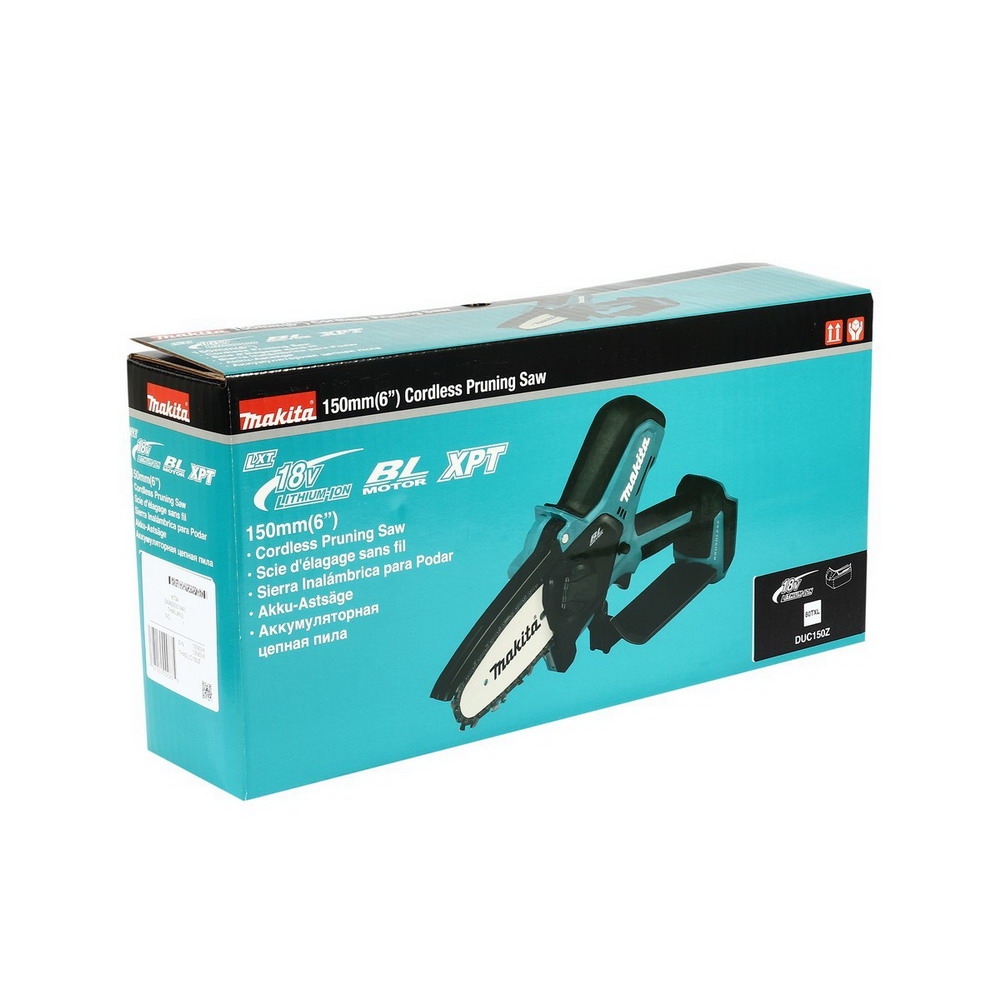 MAKITA DUC150Z เลื่อยโซ่ไร้สาย 18V. 6 นิ้ว ความเร็วโซ่ 8 เมตร/วินาที มอเตอร์ BL ไม่รวมแบตและแท่นชาร์จ