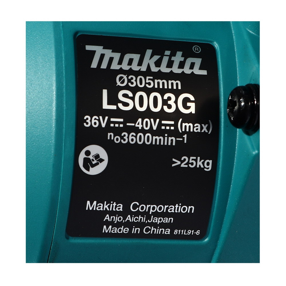 MAKITA แท่นตัดไลด์องศา 40 โวลต์ รุ่น LS003GZ ขนาด 12 นิ้ว ความเร็วรอบตัวเปล่า 3,600 รอบ/นาที ใบเลื่อยวงเดือน TCT 12″x60T