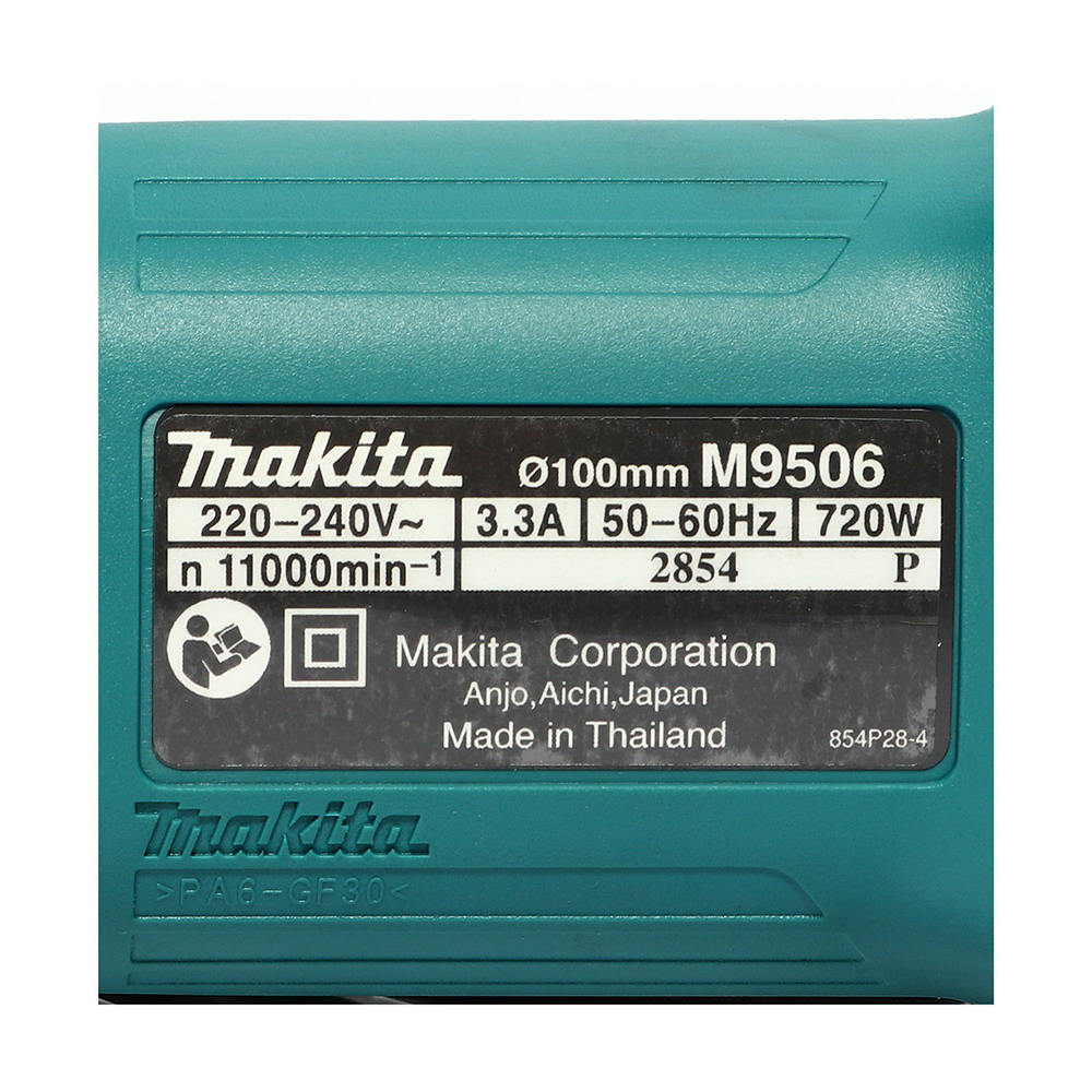 MAKITA เครื่องเจียรไฟฟ้า ขนาด 4 นิ้ว กำลังไฟ 720W. รุ่น M9506B ความเร็วรอบตัวเปล่า 11,000 รอบ/นาที สวิตช์สไลด์