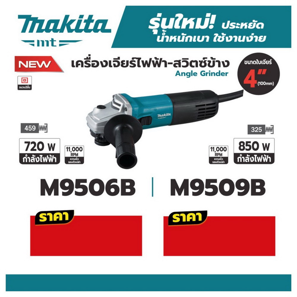 • เครื่องเจียร์ไฟฟ้า MAKITA ขนาด 4 นิ้ว กำลังไฟ 720 วัตต์ รุ่น M9506B สวิทซ์ข้าง