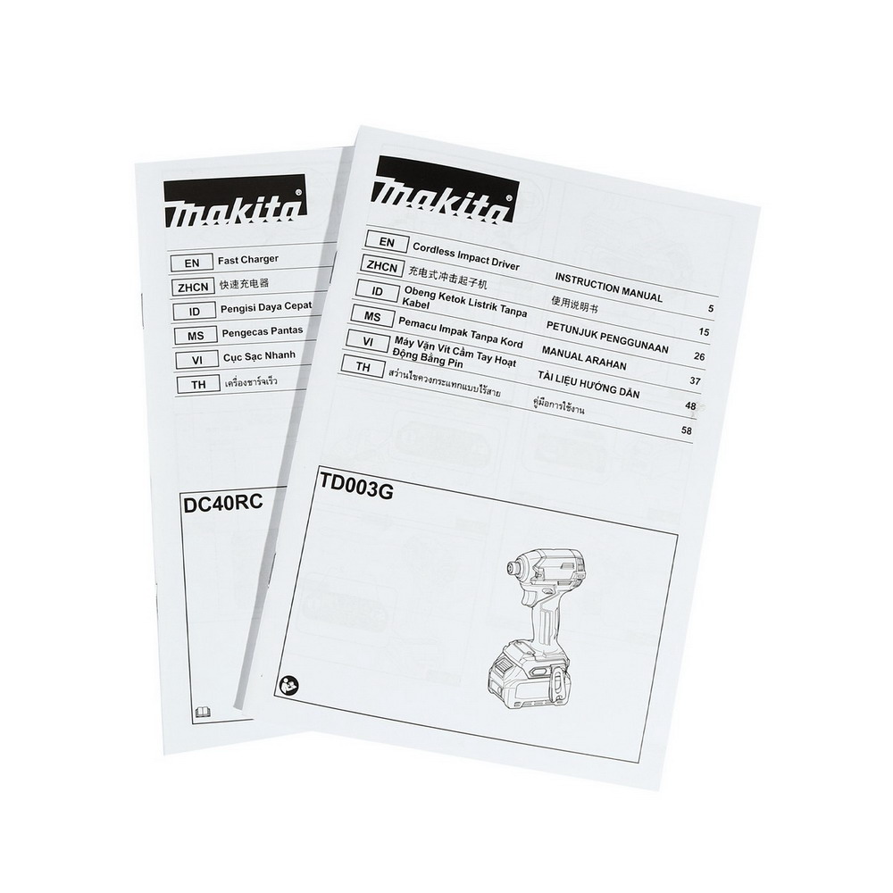 • MAKITA สว่านไขควงกระแทกไร้สาย 40 โวลต์ รุ่น TD003GA101 รวมแบตเตอรี่และแท่นชาร์จ
