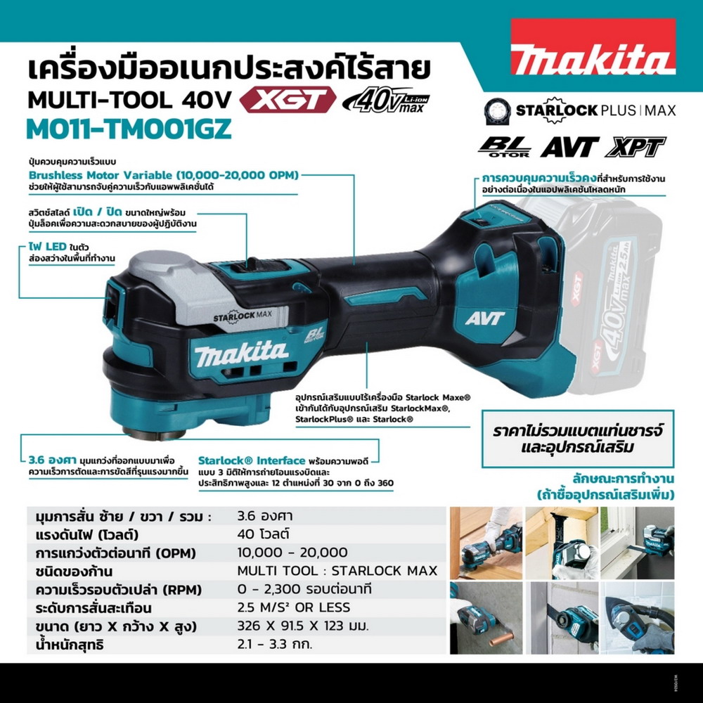• MAKITA เครื่องมืออเนกประสงค์ไร้สาย 40โวลต์ รุ่น TM001GZ มอเตอร์ไร้แปรงถ่าน (ไม่รวมแบตและแท่นชาร์จ)