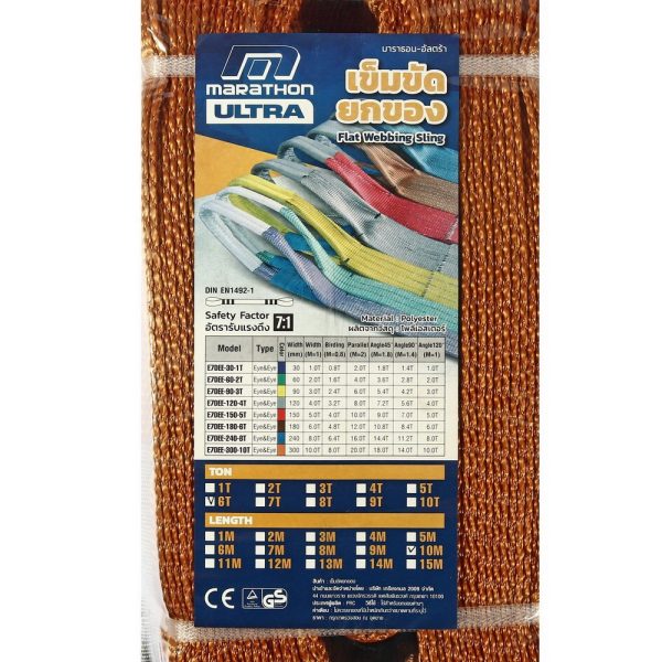 MARATHON เข็มขัดยกของ 6 ตัน ยาว 10 ม. กว้าง 180 มม. รุ่น ULTRA อัตรารับแรงดึง (7:1) 42 ตัน สีน้ำตาล ผลิตจากเส้นใยโพลีเอสเตอร์