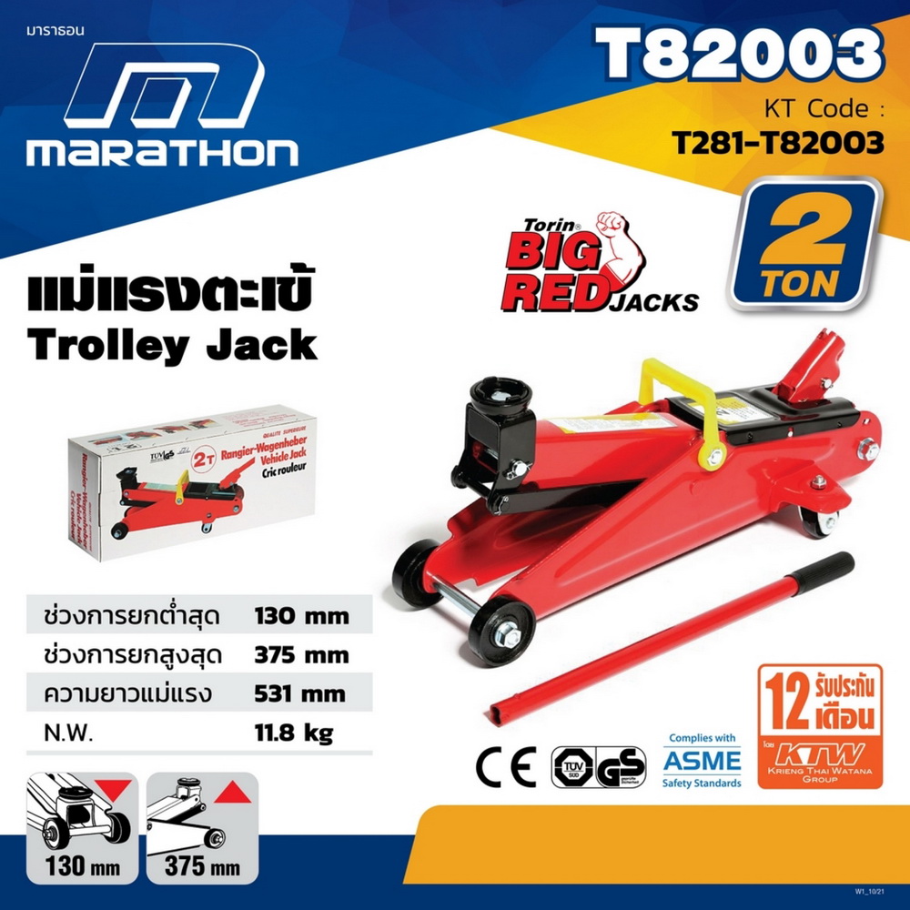 • แม่แรงตะเข้ MARATHON รุ่น T82003 ขนาด 2 ตัน