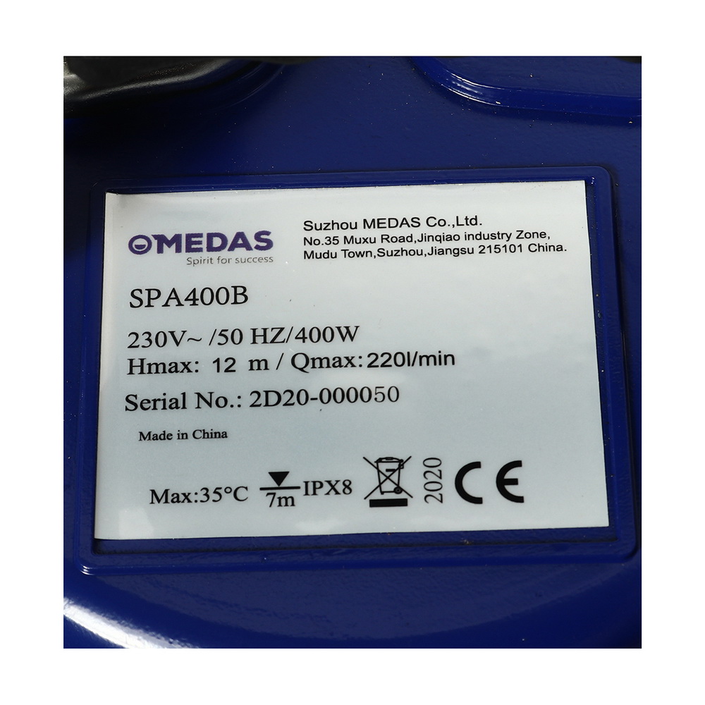 MEDAS ปั๊มจุ่มดูดน้ำ มีดาส รุ่น SPA-400B ขนาดท่อ 2″ กำลังมอเตอร์ 400 วัตต์ ไม่มีลูกลอย